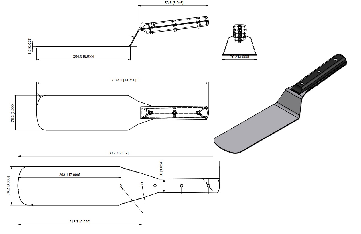 Spatula, Stainless Steel, Black Handle, 8in x 3in Blade